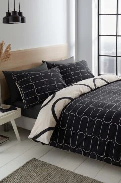 Catherine Lansfield Linear Curve Geometric Reversible Duvet Cover And Pillowcase Set