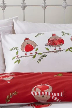 Catherine Lansfield Christmas Robins Duvet Cover And Pillowcase Set