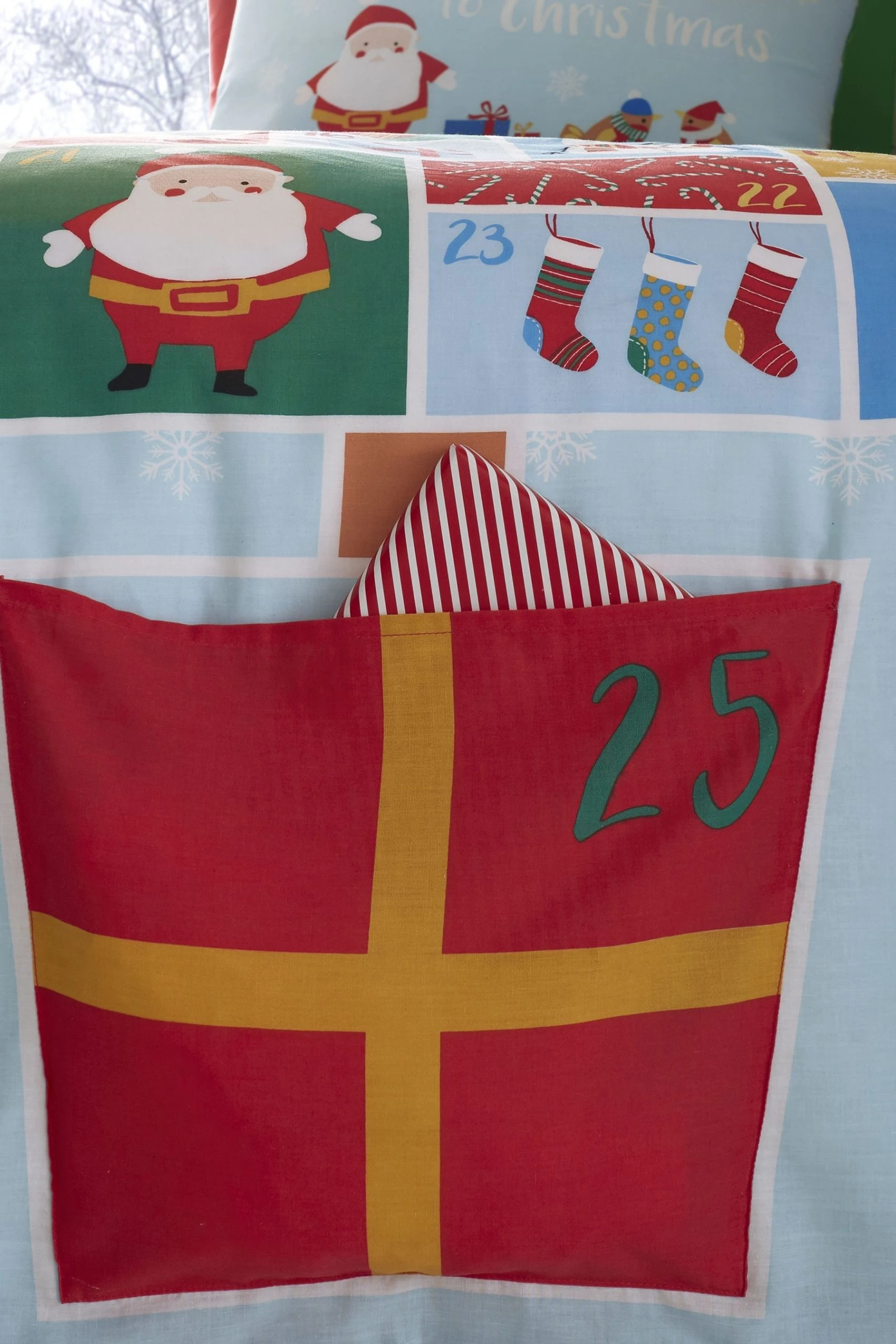 Catherine Lansfield is renowned for style and quality – designed and developed in Great Britain. It’s nearly time, the countdown to Christmas is here! Add to the excitement with this fun and festive advent calendar design with a little pocket, perfect for presents or new pyjamas ready for the big day. Made from soft and comfortable easy care 52% Polyester 48% Cotton fabric. Wash at 40 Degrees. Single includes 1 Duvet Cover and 1 Pillowcase, Double includes 1 Duvet Cover and 2 Pillowcases. Search ‘Catherine Lansfield Countdown to Christmas’ to see the full collection.