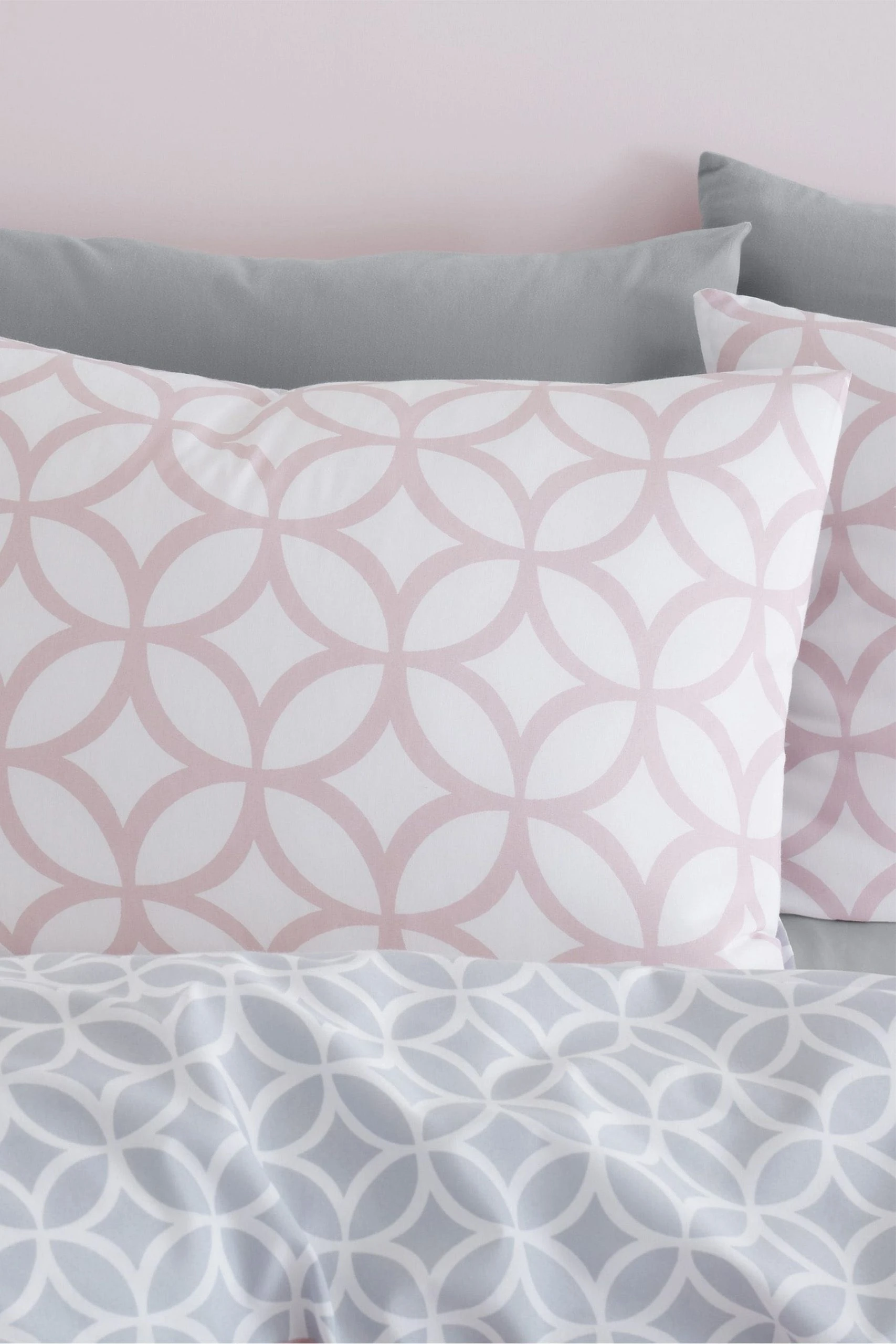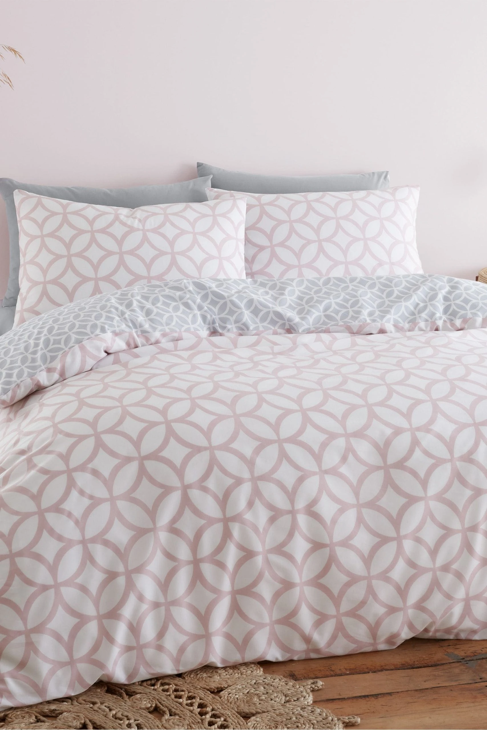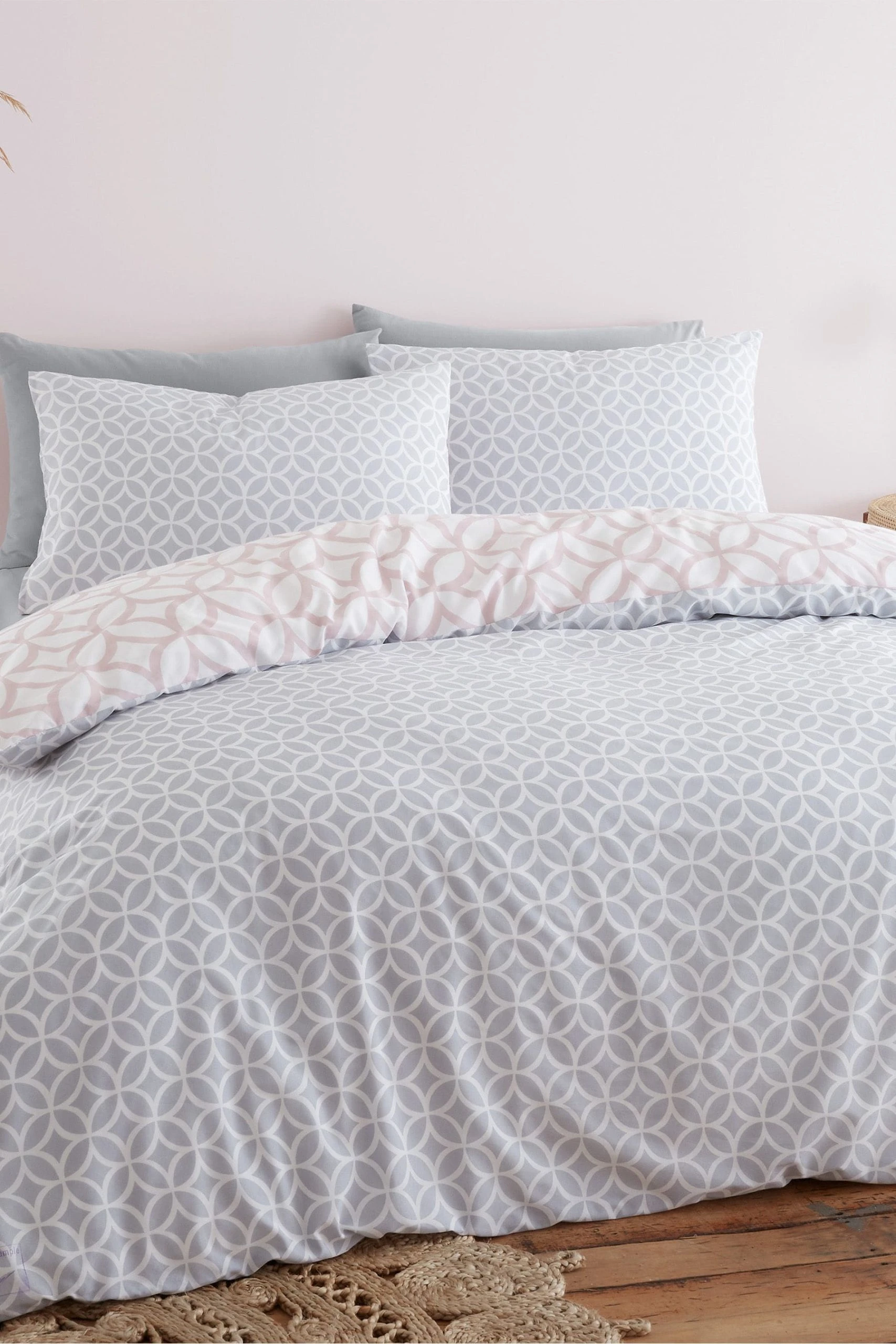 Catherine Lansfield is renowned for style and quality – designed and developed in Great Britain.Striking on-trend style, this fully reversible bedlinen features a contemporary geometric pattern. Created from easy-care and durable polycotton fabric for everyday use. Ethically sourced overseas and made to quality and human-ecological safety standards, in accordance with STANDARD 100 by OEKO-TEX®.Single size (135x200cm) includes 1 Duvet Cover and 1 Pillowcase, Double (200x200cm) and King (220x230cm) size includes 1 Duvet Cover and 2 Pillowcases.