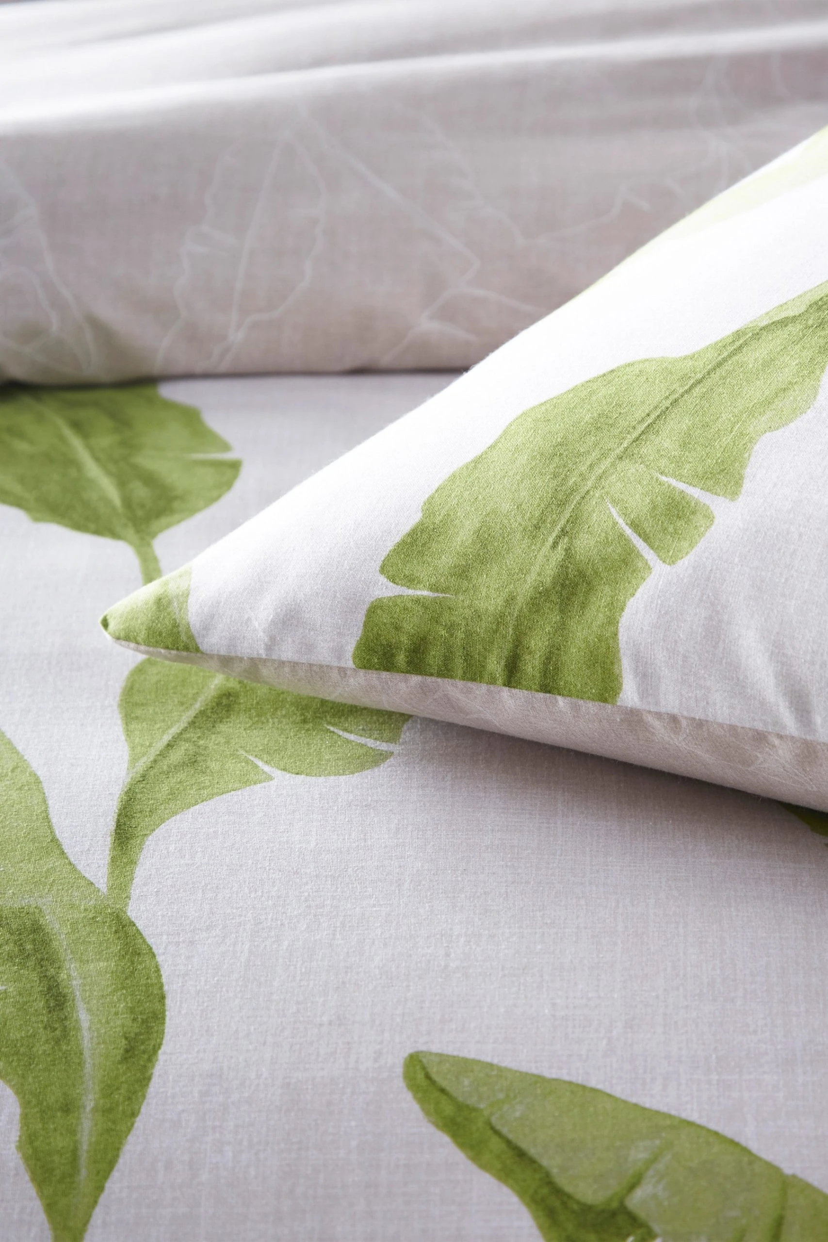 Furn. Plantain Botanical Leaves Reversible Duvet Cover And Pillowcase Set