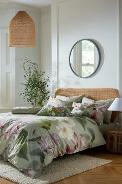 This bold explosion of colour and form is full of botanical abundance. The reverse is a wonderful tonal pinstripe of white and rose on a sage green ground.Digitally printed onto 200 thread count cotton. A superior production process delivering the finest quality print detail; the depth and clarity of which is vital when reproducing the exquisite botanical artworks from Kew’s collection.