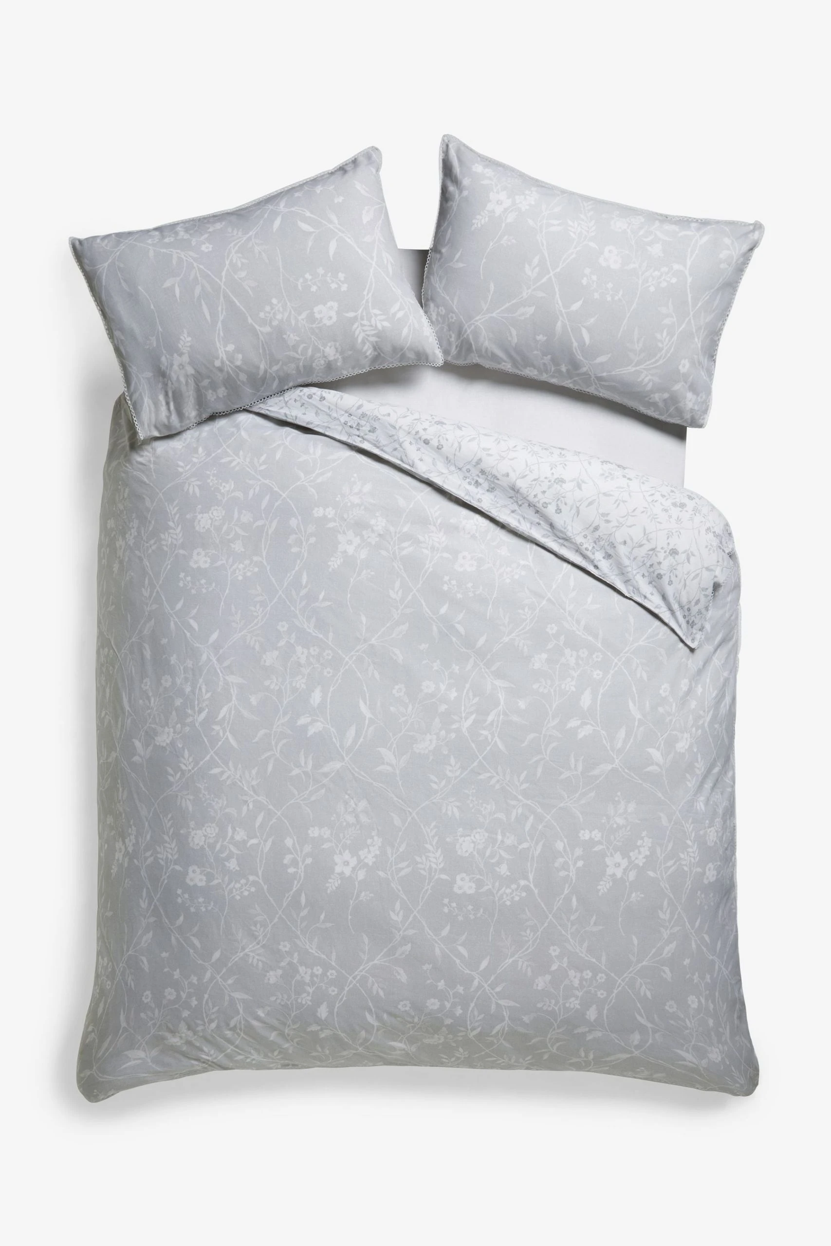 Designed for slow mornings and dreamy nights, our grey reversible floral with trim duvet cover and pillowcase set is made from soft and breathable cotton for a smooth and soothing sleep. The loop trim detail frames the floral print and offers a refined finish. The subtle reverse pattern means you can switch up your space from one night to the next. All that’s left to do is to hit snooze (on repeat).