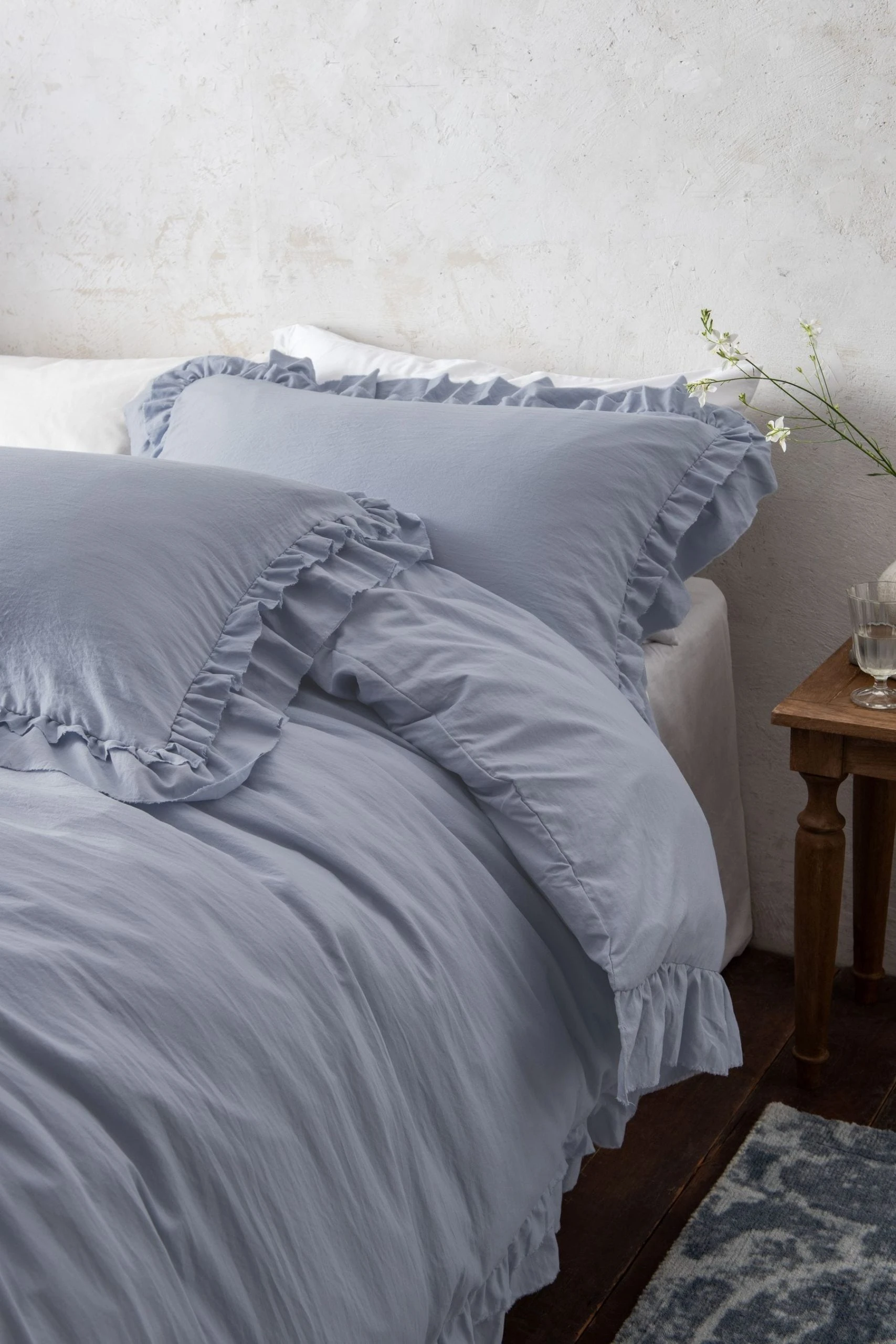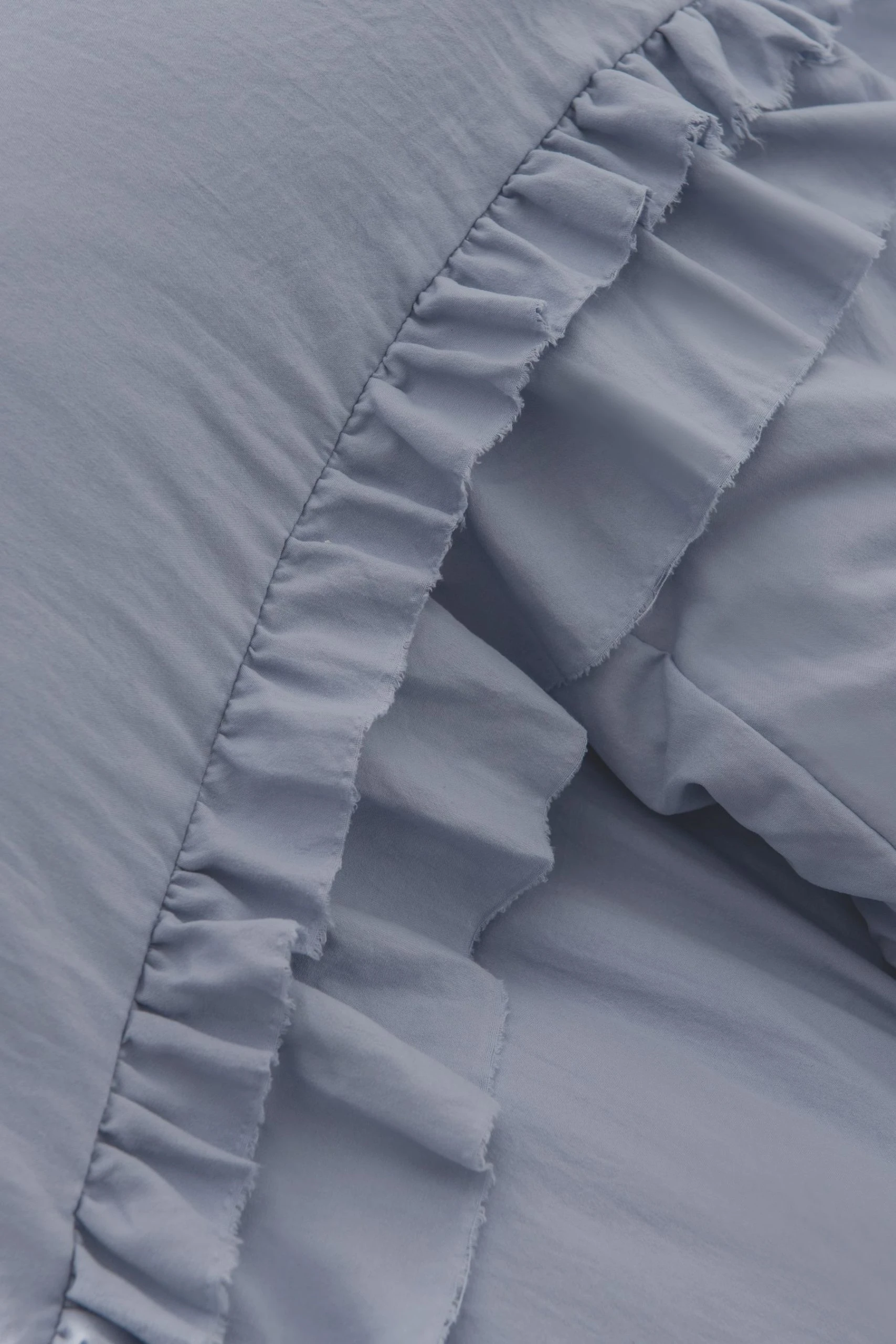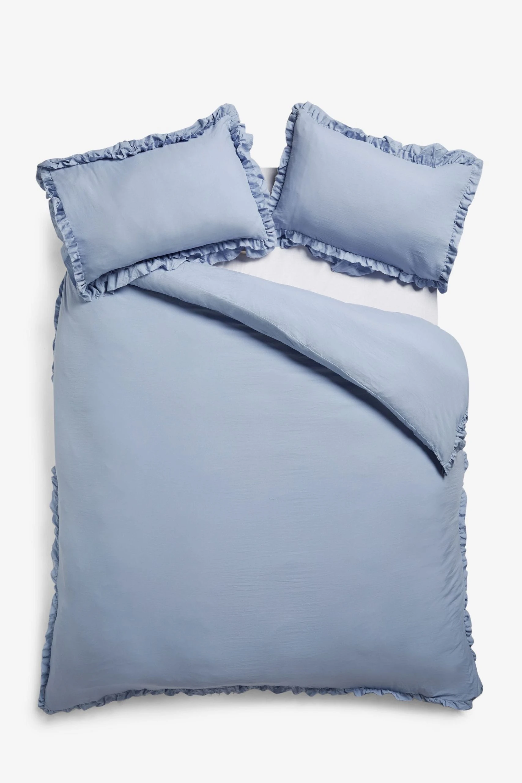 Features a raw edge double frill. Super Soft. Easy care, non iron. Romantic Feel.