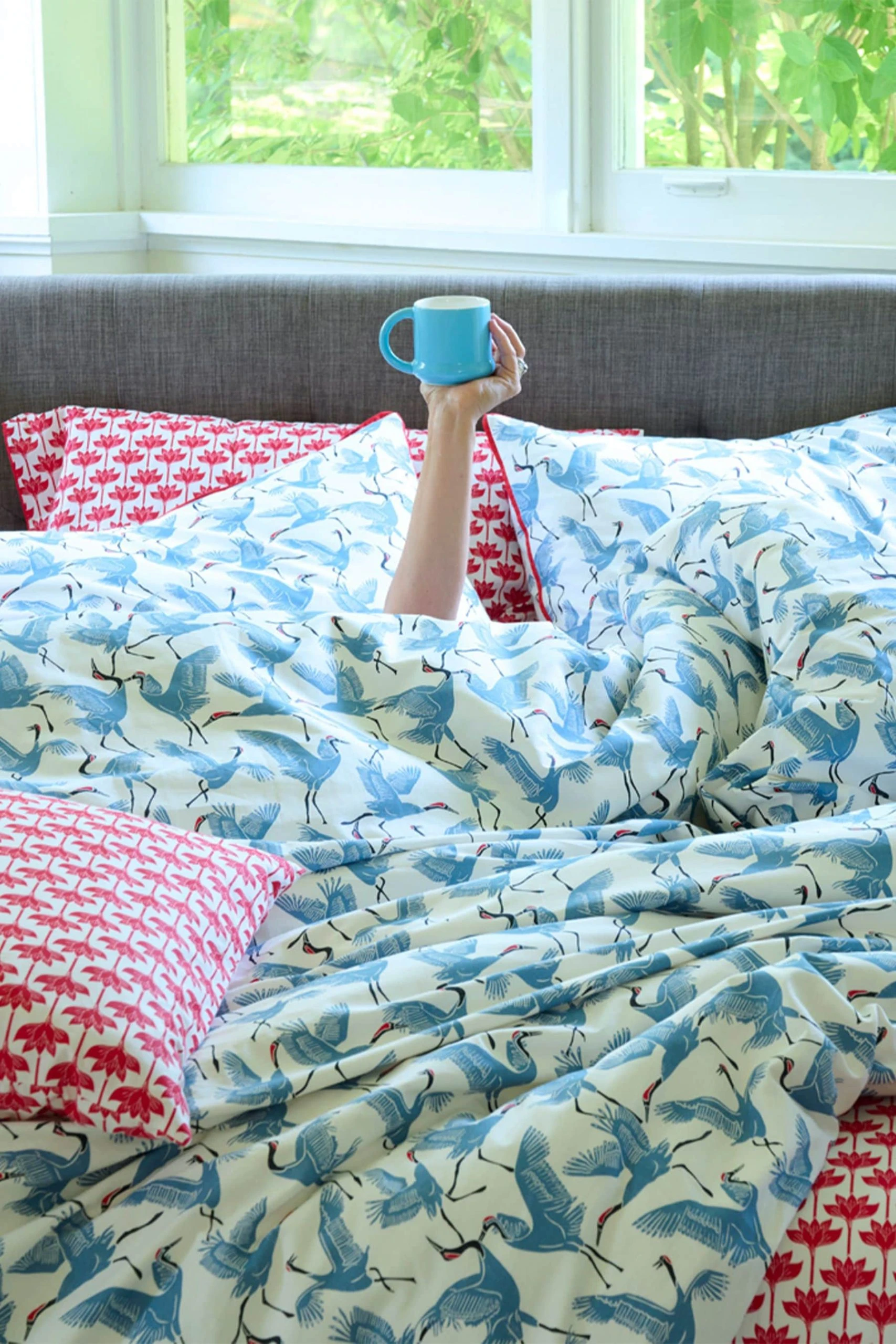 Responsibly made of 100% Cotton, this soft, sustainable and stylish duvet cover set features an on trend abstract print. Created in collaboration with husband and wife interior design duo Cortney and Robert Novogratz, the entire Novogratz by Utica bedding collection shows off the couple’s inspiring boutique design style. For over 25 years, the Novogratz have integrated colourful and playfully modern thinking into everything they do. A family of nine has given them a unique perspective on the needs of a modern family and they love nothing more than creating impactful, beautiful designs that families of all kinds can live with every day. Set includes duvet cover and pillowcase/s. OkeoTex Made In Green.