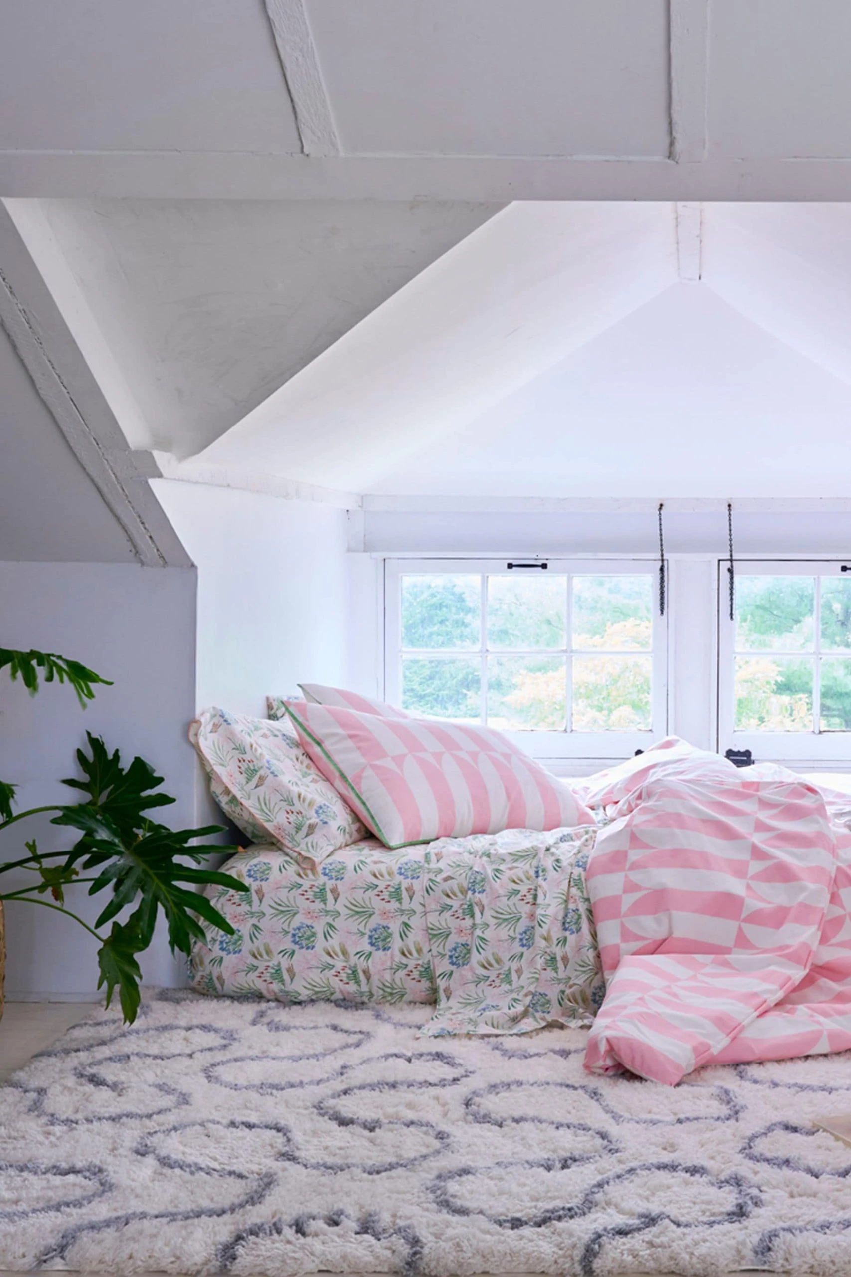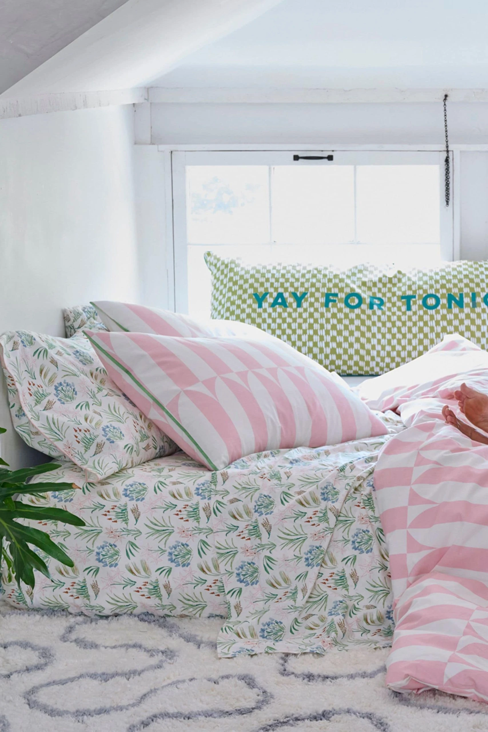 Responsibly made of 100% Cotton, this soft, sustainable and stylish fitted sheet features an on-trend abstract print. Created in collaboration with husband-and-wife interior design duo Cortney and Robert Novogratz, the entire Novogratz by Utica bedding collection shows off the couple’s inspiring boutique design style. For over 25 years, the Novogratz have integrated colourful and playfully modern thinking into everything they do. A family of nine has given them a unique perspective on the needs of a modern family and they love nothing more than creating impactful, beautiful designs that families of all kinds can live with every day. Okeo-Tex Made In Green. 30cm box.