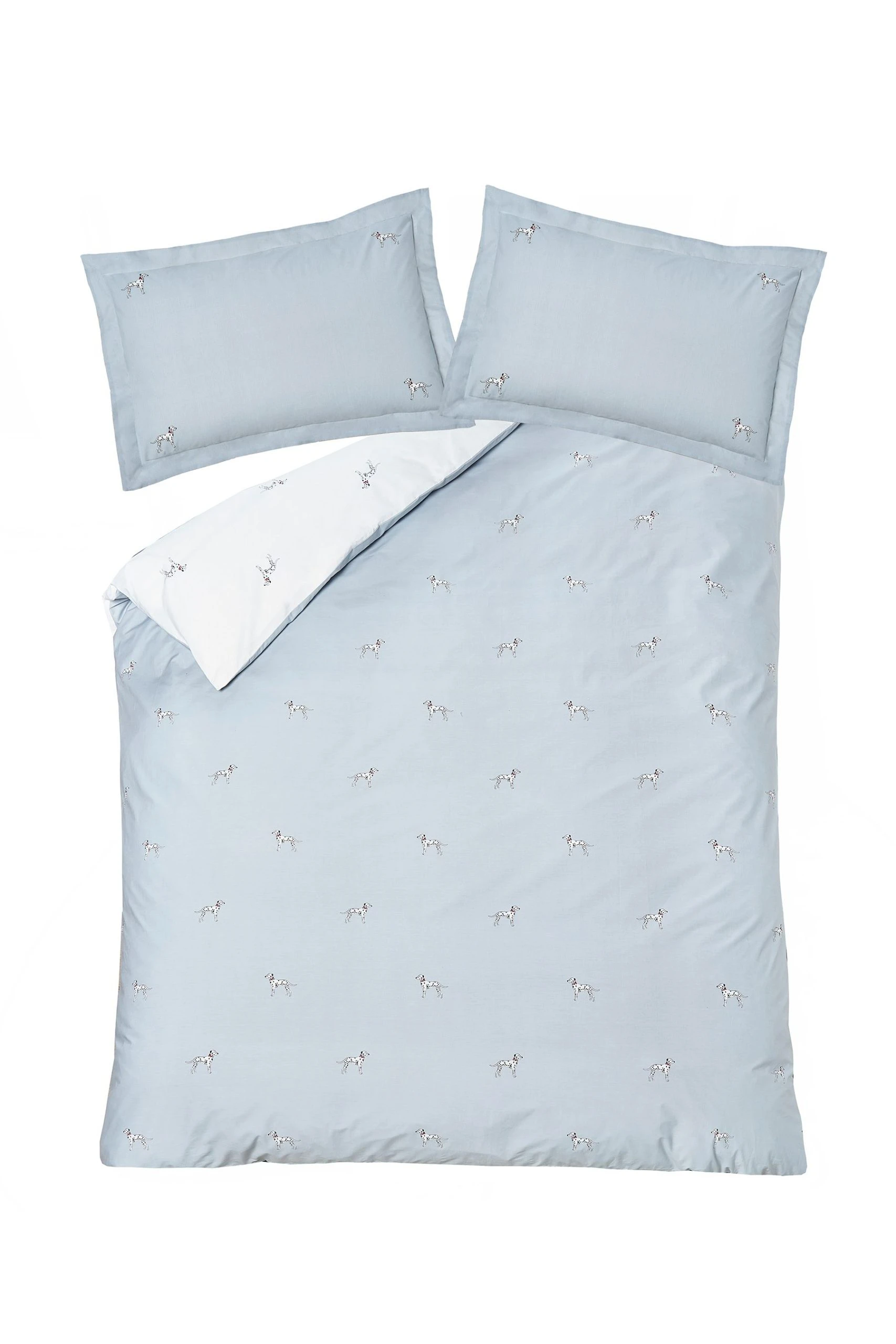 Curl up and relax in Sophie s beautiful Dalmatian bedding design on a crisp 200TC cotton quality. Known for their striking coats and excellent temperament, our four-legged friends stand tall and proud wearing a regal red collar. Spot the difference and choose between the sky blue face or the fresh white reverse design for you to instantly change up your room styling. The reverse features the same motifs on a fresh white ground, while the Oxford pillowcases have corner dalmatian detailing. Available in sizes: single set, double set, king set and Super king set. Set includes duvet cover and 2 pillowcases (Includes 1 pillowcase with single set).